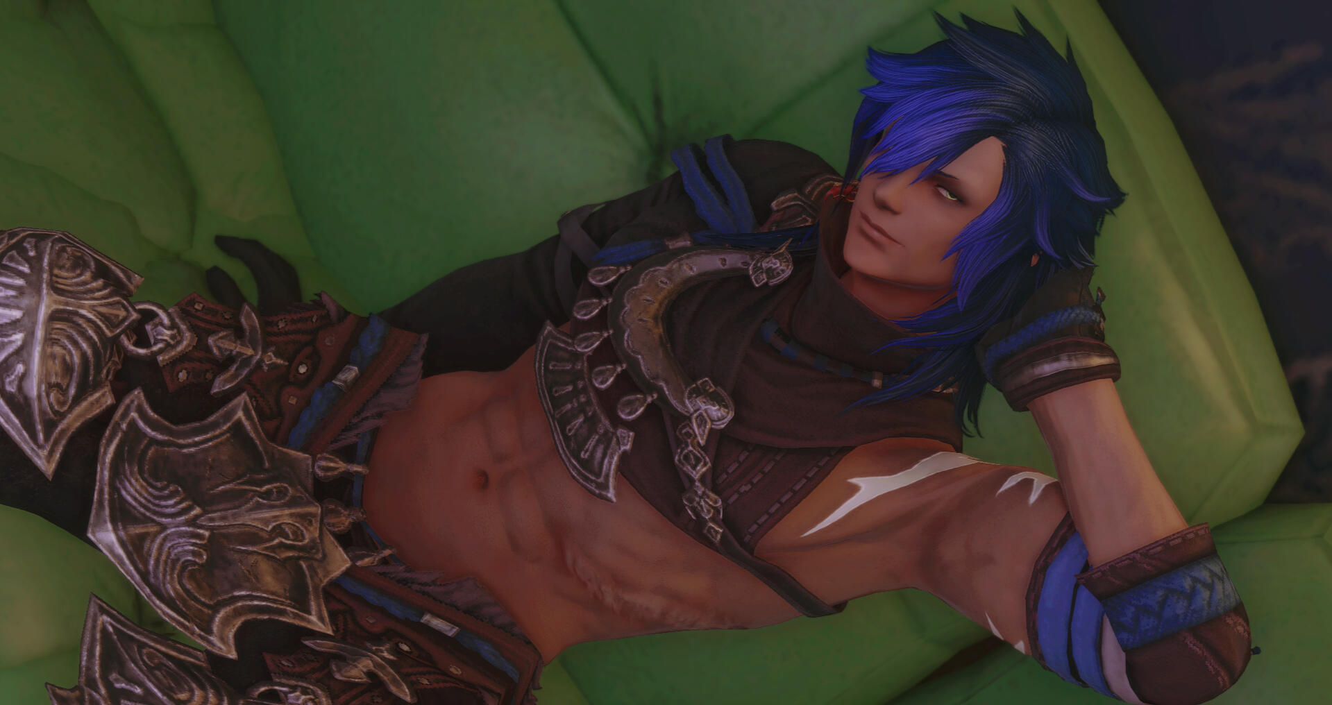 RP HooksAla Mhigo - Are you from Ala Mhigo as well? Did you help the Resistance at any point? He has plenty to talk about. If you were part of the Doman resistance as well he's happy to trade stories or help with your mission.Treasure Hunting - He has a great weakness for a good adventure with a spot of treasure waiting at the end of it. Sometimes he's more interested in the danger factor than the shiny parts at the end, but either way he might be game for such a venture.Fellow Mischief-Makers - The man likes to cause trouble. If you need someone who will probably drop everything to throw hands, he's a good bet. Whether it's a bar fight or a healthy spar, he can be convinced.Shaken & Stirred - Loki is a man of few skills, but he has picked up a few bartending tricks. Pouring drinks is part of it, but he's a decent ear for folk with thoughts or troubles.World Wanderer - Often moves between Gyr Abania, La Noscea, and Kugane so he's full of all sorts of travel facts and stories. You might find him just about anywhere, but usually with his husband.~